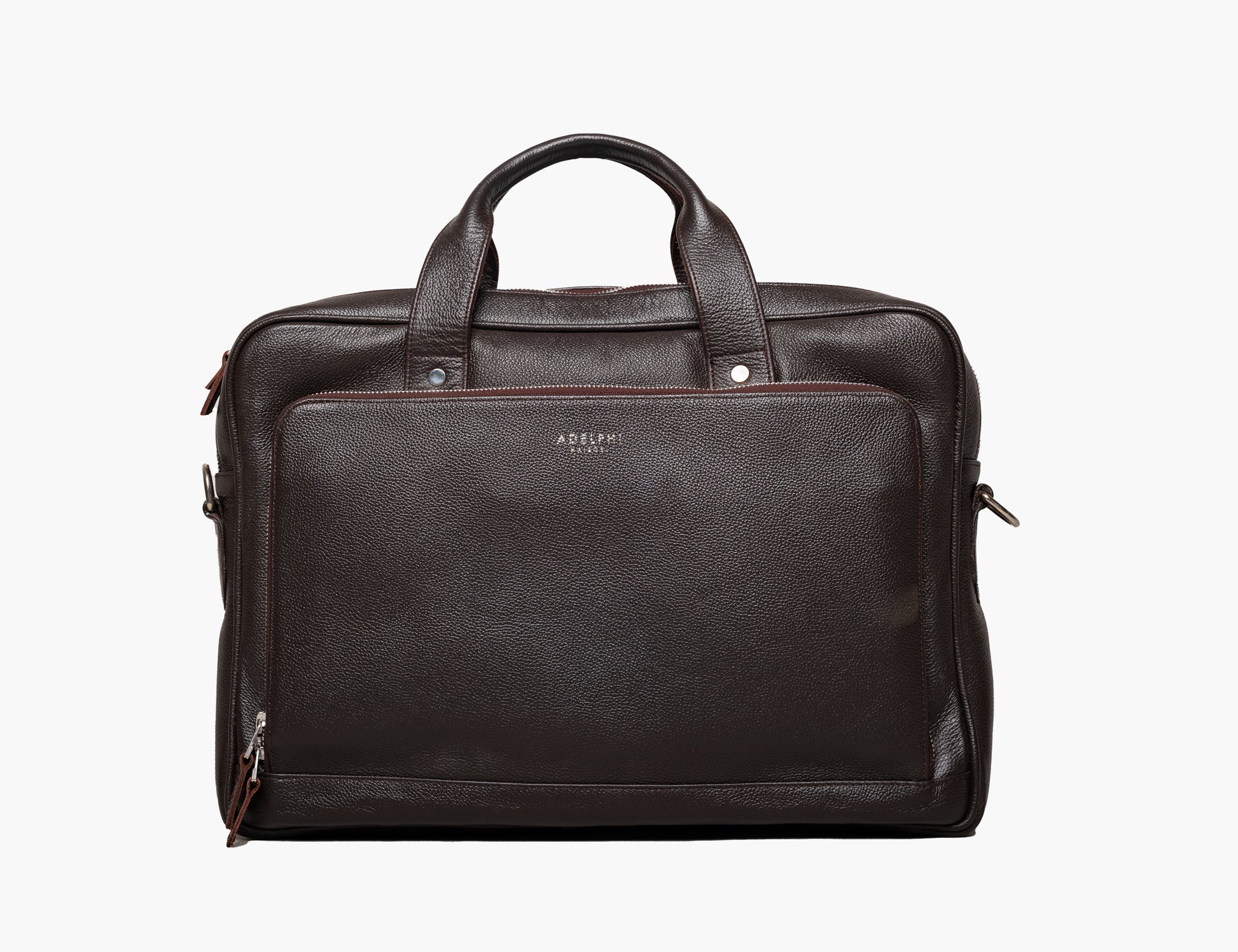 Power and precision meet in this executive-ready carryall. The Atlanta Briefcase II refines professional travel with clean lines, impeccable craftsmanship, and maximum functionality. Made from luxurious full-grain pebbled leather, it features dual compartments, polished silver hardware, and an elegantly curved handle design for all-day comfort. Whether in transit or in the boardroom, it embodies timeless sophistication and intelligent organization.