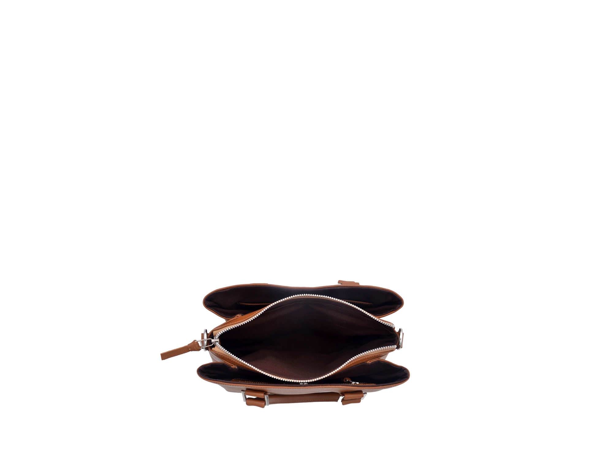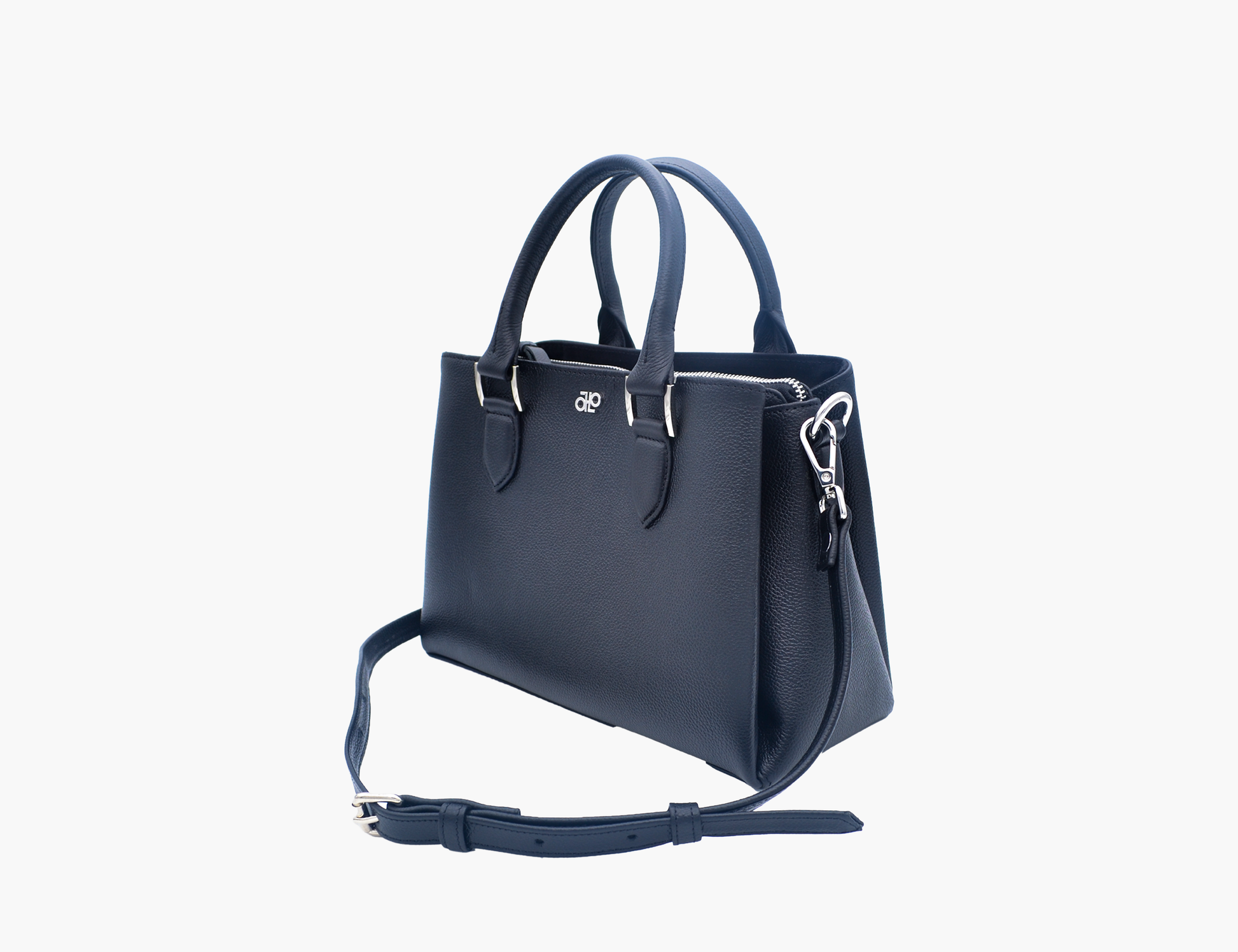 Structured top handles and a detachable shoulder strap offer versatile carry, while twin zipped compartments and a central slip pocket provide thoughtful organization. Fully lined in soft cotton fabric, the interior reflects quiet luxury through detail and feel. No base studs — just clean, uninterrupted lines that preserve the bag’s refined simplicity.