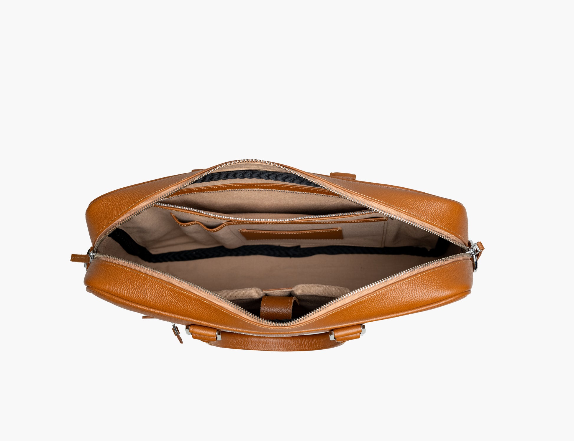 Refined and timeless, the Adelphi Camel 3008 Bag offers understated sophistication for the modern professional. Crafted in premium full-grain pebbled or oil pull-up leather, its clean flap silhouette conceals a well-organised cotton-lined interior ideal for carrying essentials with ease. An adjustable crossbody strap and magnetic closure add everyday convenience.