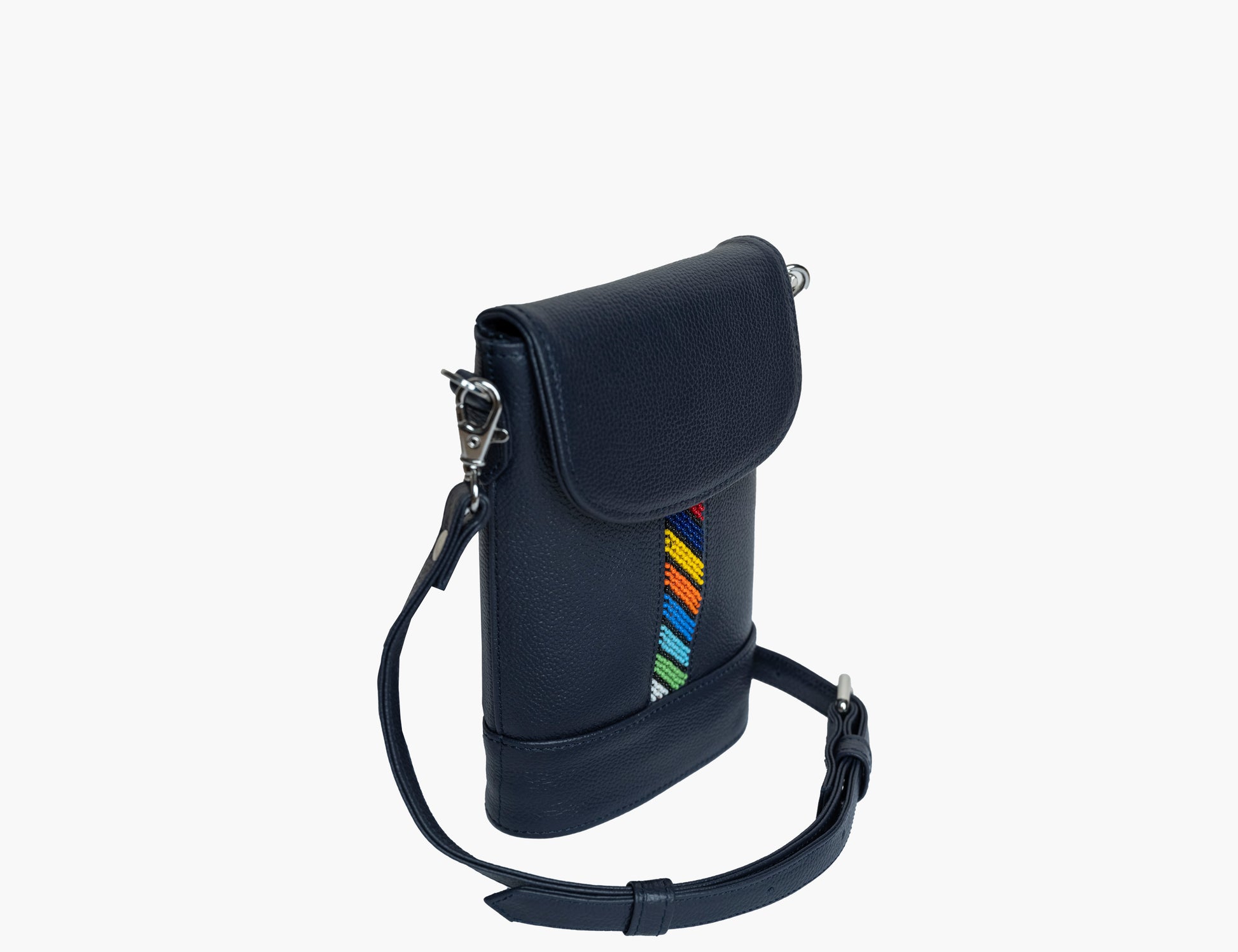 Effortlessly sleek and distinctly refined, the Slim Phone Bag combines everyday ease with understated artistry. Its structured silhouette is elevated by a vertical hand-beaded Maasai accent — a subtle statement of color, culture, and craftsmanship. Compact yet practical, it’s designed to keep your phone and essentials close in truly elevated form.