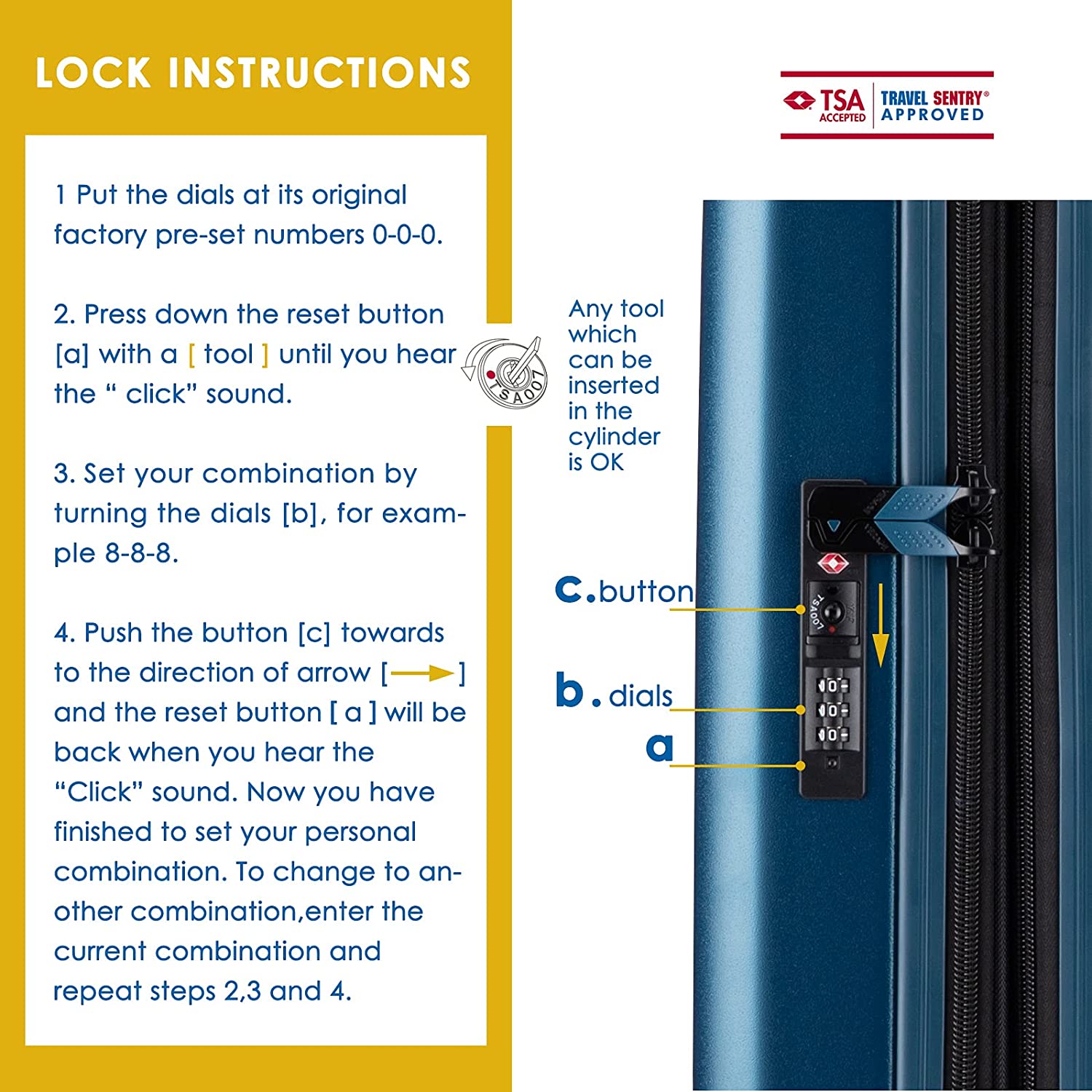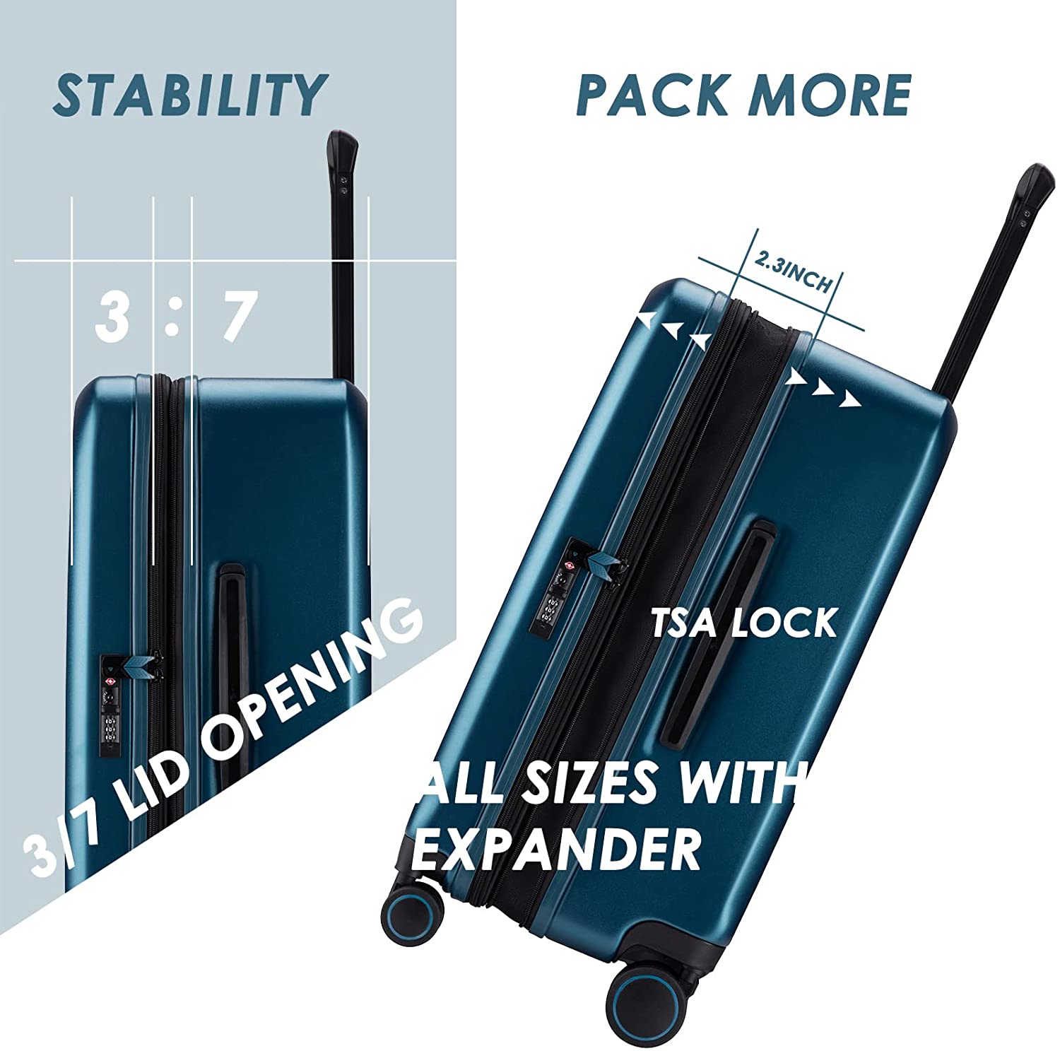 - Includes a mesh bag which can be attached to the side of the suitcase for personal belongings
