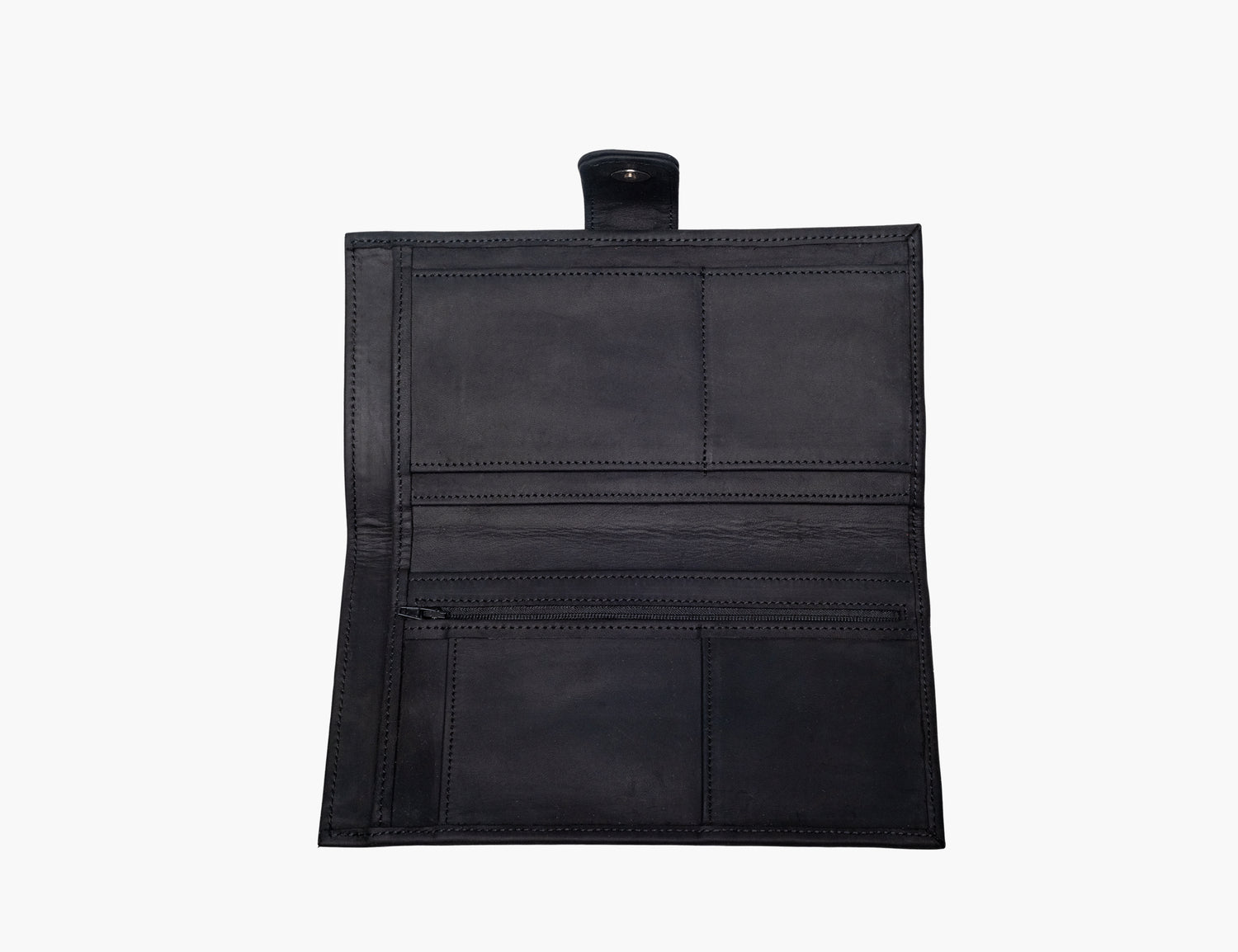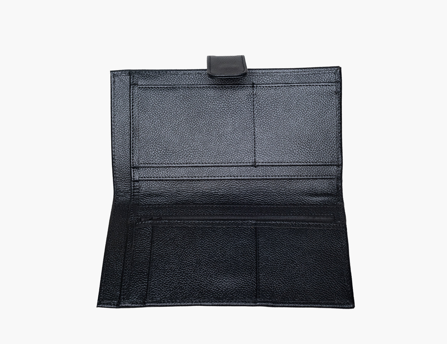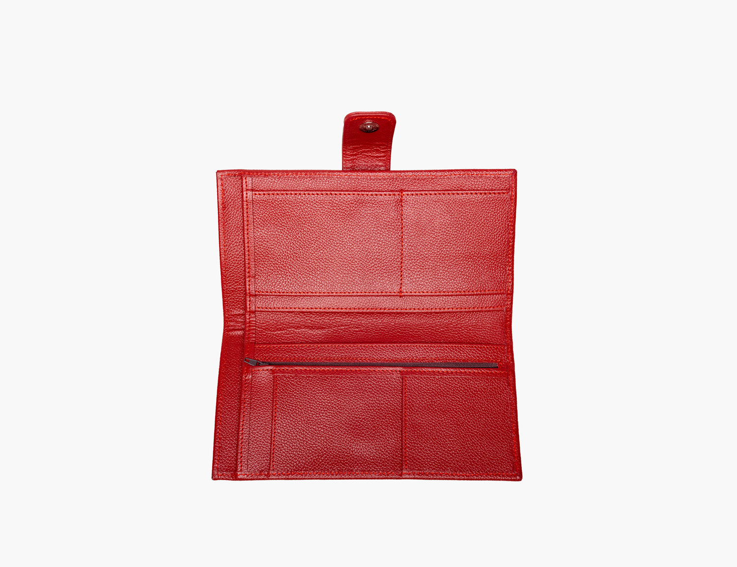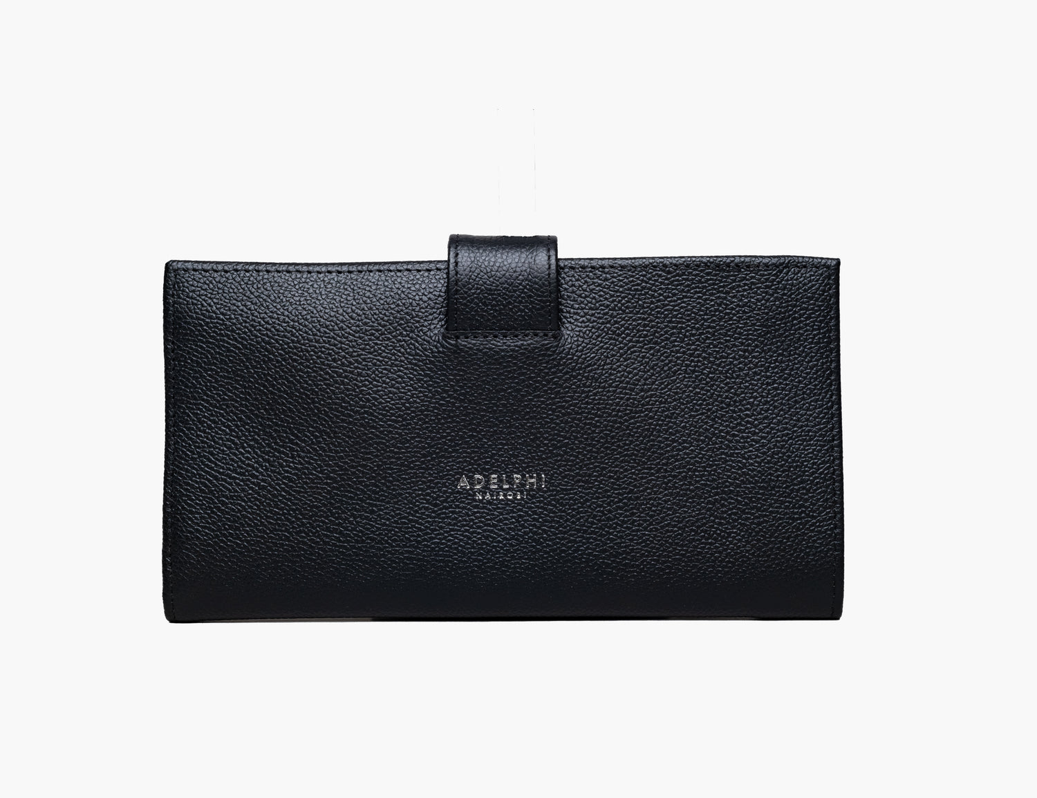 This leather travel wallet has a slim profile and features compartments of different sizes. A large document compartment ensures space for your tickets and boarding passes.